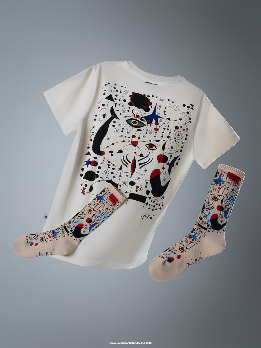 Miró’s vision of art in the everyday perfectly aligns with Jimmy Lion’s philosophy: turning socks, tees, and more into wearable works of art you can enjoy every day.