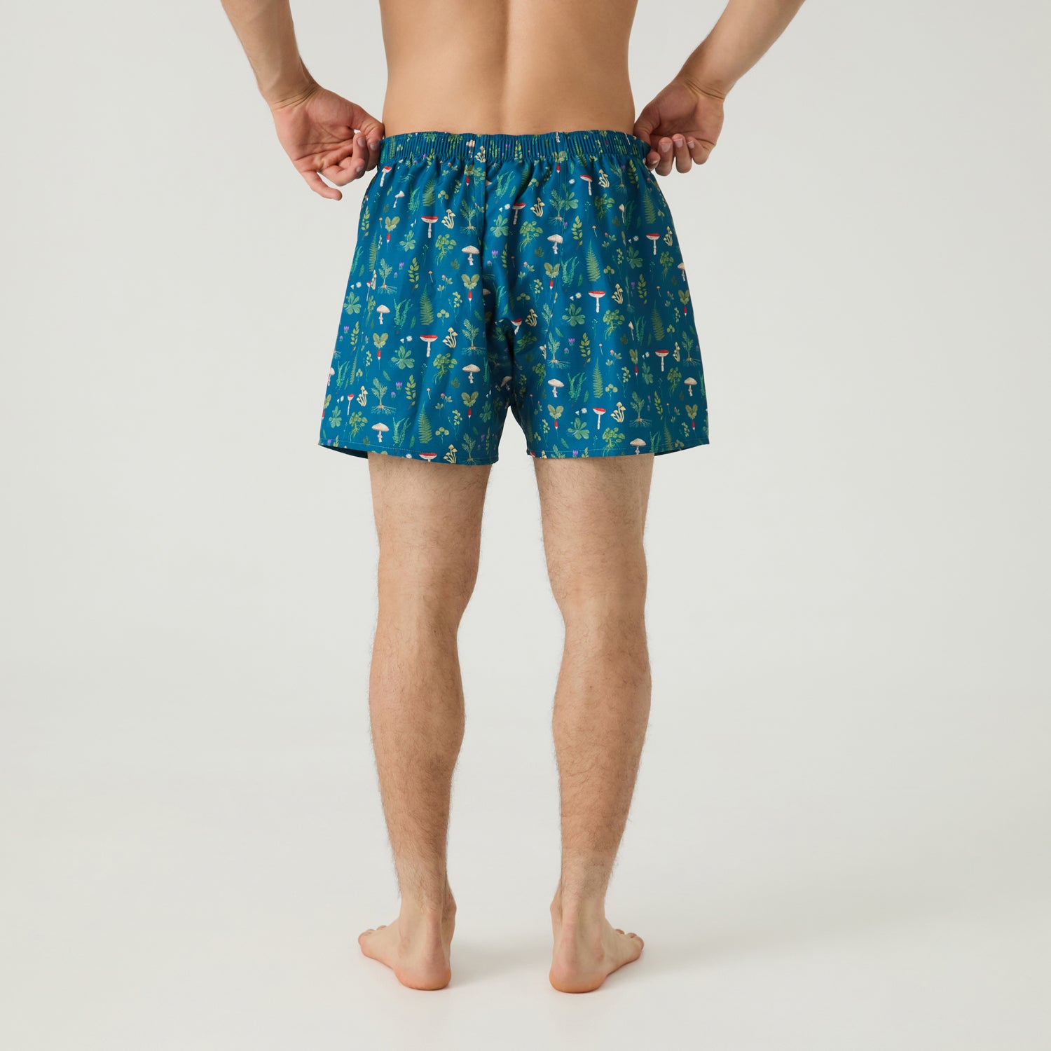 Organic cotton boxer shorts with a muschroom print.